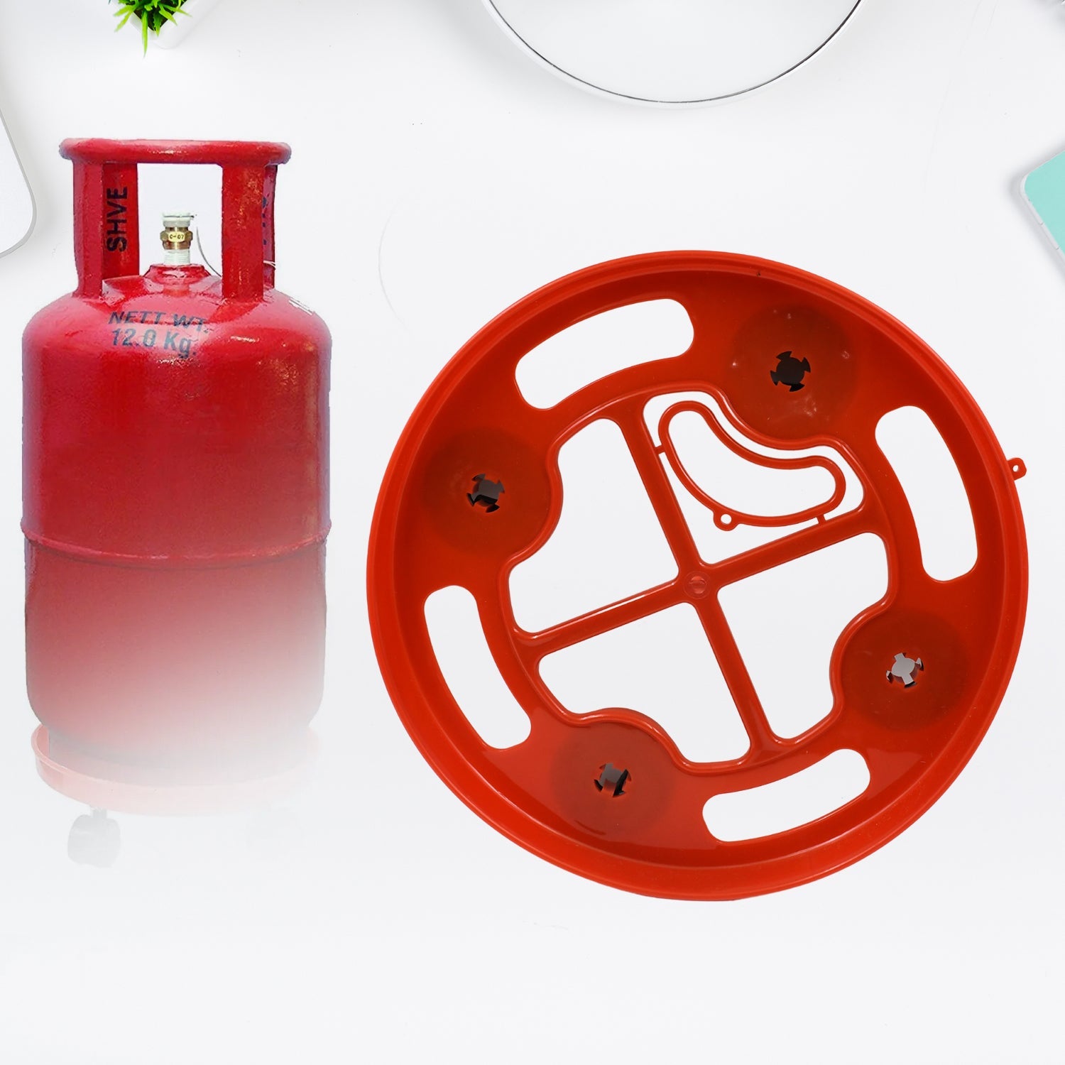 - No need to lift cylinder. LPG gas cylinder trolley - is a concept to make your LPG cylinder easily movable. It is made up of plastic, making it durable and long-lasting. LPG gas cylinder trolley comes with good quality wheels to make the cylinder easily movable. A beautiful way to free up some extra space in your kitchen. No more scratches and rust marks on your floor heavy-duty plastic good quality.